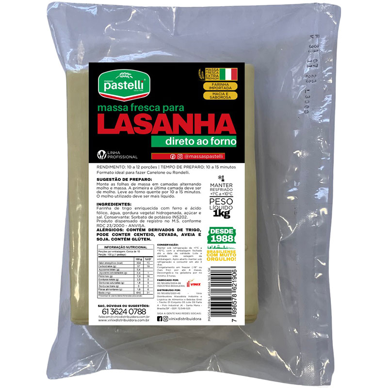 MASSA PARA LASANHA PASTELLI 1KG